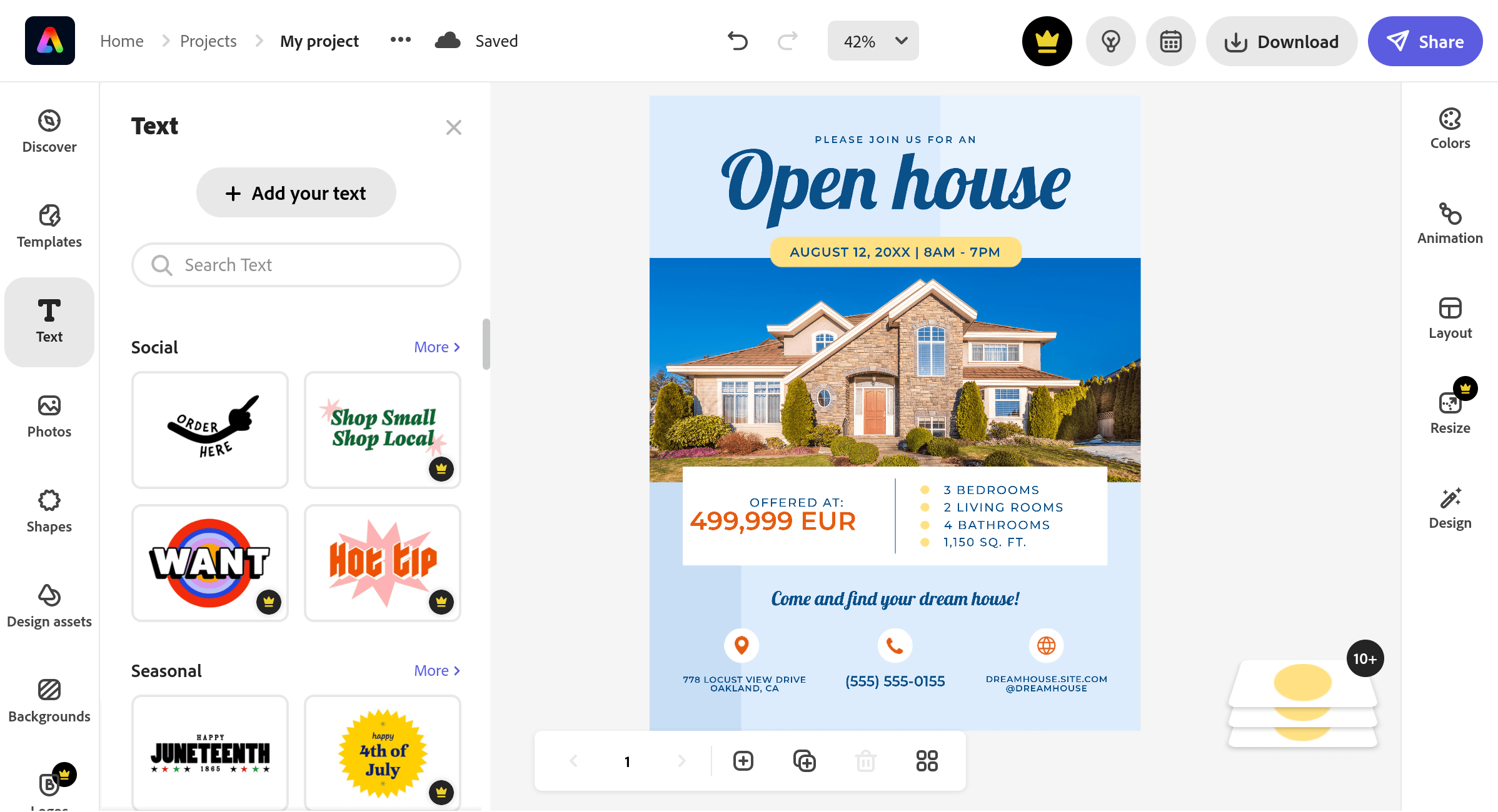 Concernant les différents outils de création, il est possible de créer ou d’utiliser des templates de flyer immobilier grâce à des outils comme Adobe Express…