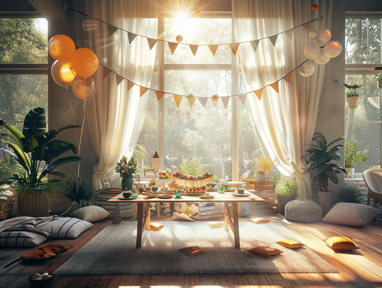Créez une atmosphère unique grâce à la décoration : La décoration doit immerger vos invités dans l’univers festif dès leur arrivée. Respectez les règles du propriétaire tout en laissant libre cours à votre créativité. Harmonisez les couleurs, les lumières et les ornements pour refléter le thème de l’anniversaire. La cohérence visuelle est clé : les éléments décoratifs doivent se compléter et non se concurrencer. Pensez à des décorations suspendues, des centres de table captivants ou des espaces photo personnalisés qui servent aussi de souvenirs mémorables.